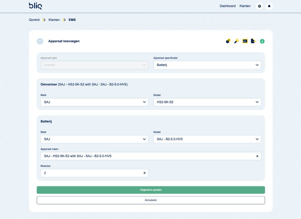 - Je kunt meerdere Bliq Energiemanager v2 toevoegen aan één installatie