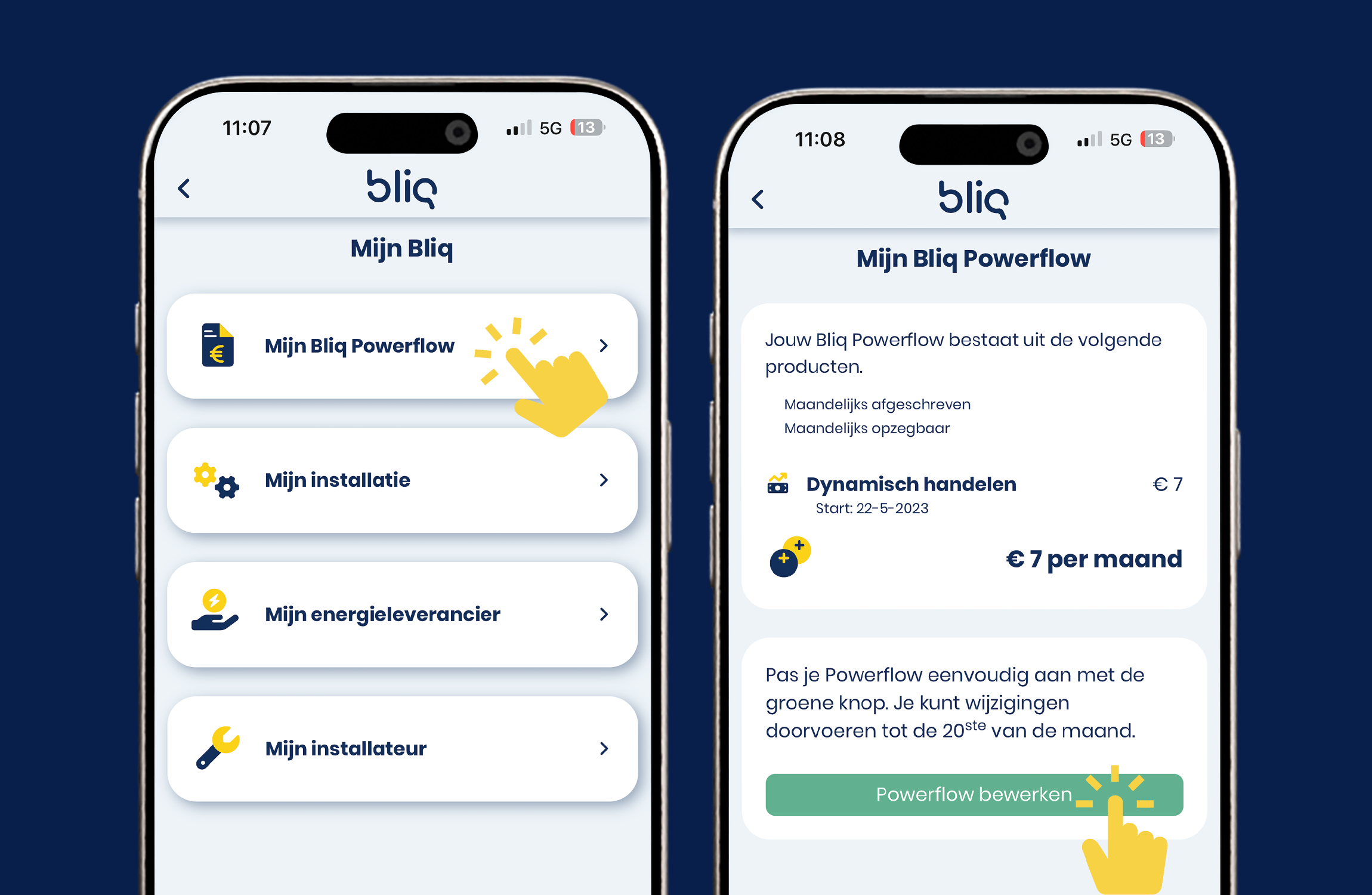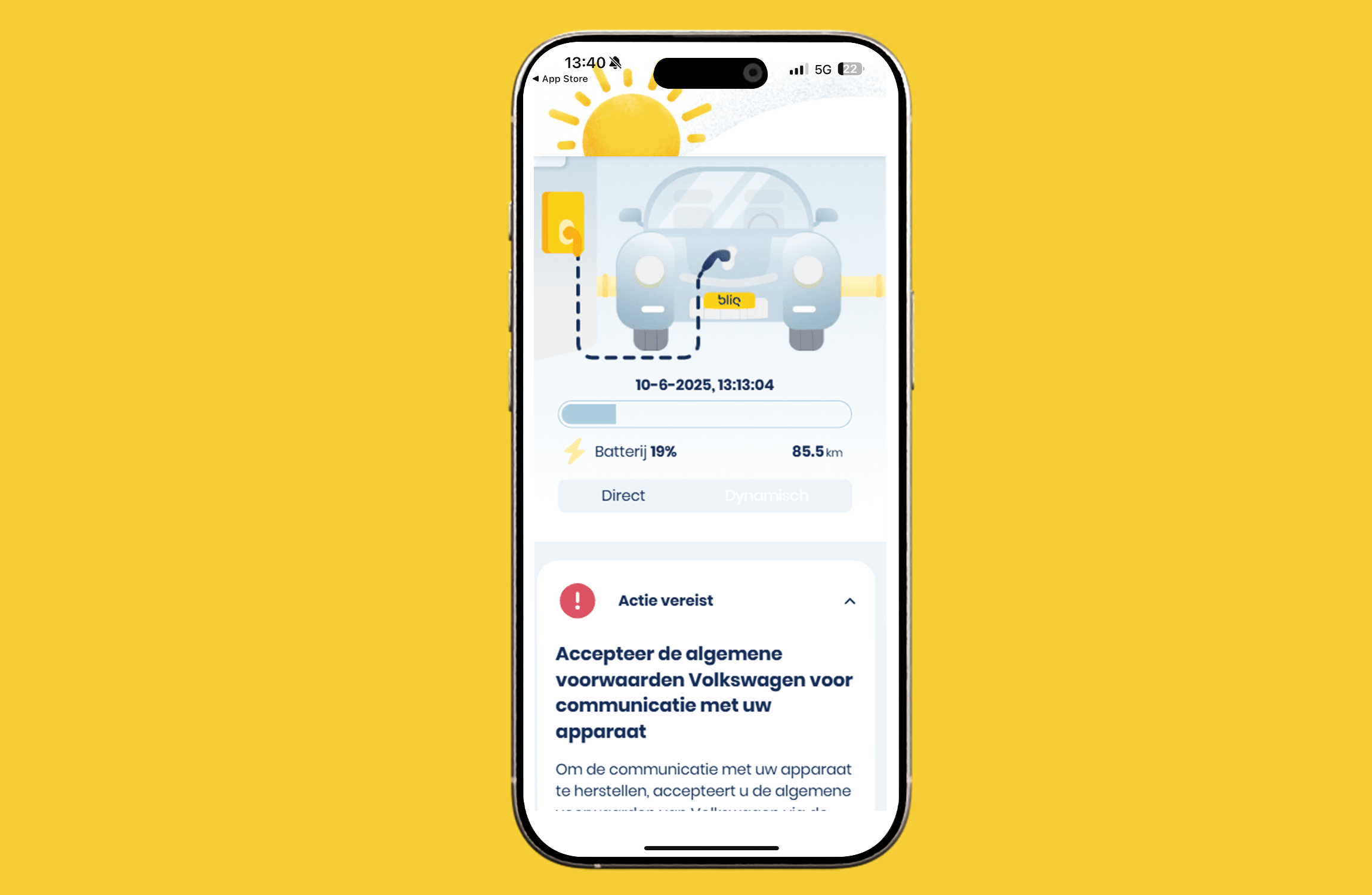 - Wanneer je auto thuis is ingeplugd, genereert Bliq automatisch een laadschema. Dit schema wordt gebaseerd op jouw voorkeuren en dynamische stroomprijzen. Als prijzen wijzigen, wordt het schema automatisch aangepast.