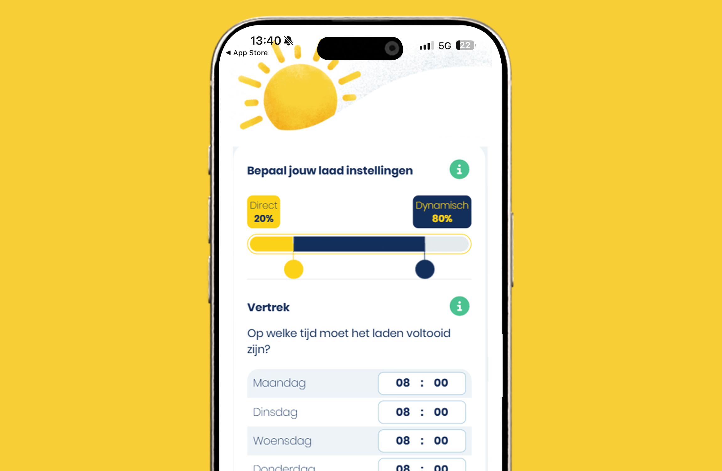 - Kies jouw instellingen, bepaal een laadschema en bekijk laadrapportages, helemaal afgestemd op jouw wensen.